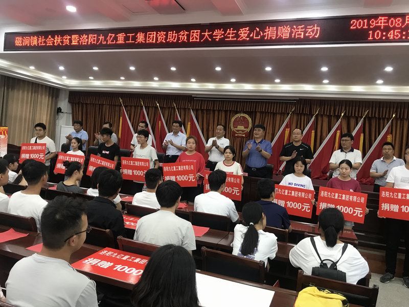 愛是與生俱來的,在血液里流動,在骨子里結(jié)晶,它源源不斷的由心而生,永不枯竭,只要人人都愿意奉獻(xiàn)一點愛,就如甘霖沐浴大地,人間處處盛開幸福之花! 為響應(yīng)洛陽市政府精準(zhǔn)扶貧政策,洛陽九億重工集團有限公司及董事長王九茂積極參與捐資助學(xué)的慈善義舉活動,特做出如下決定:1、公司幫扶磁澗鎮(zhèn)2017年新招貧困大學(xué)生21名順利入學(xué),每人資助2000元,總計肆萬貳仟元整; 2、總經(jīng)理王九茂(縣政協(xié)委員)以個人名義資助磁澗鎮(zhèn)南窯村2017年新招大學(xué)生6名,總計12000元整; 我相信,在社會各界的大力支持和共同努力下,我們的“愛心助學(xué)”活動將會惠及到更多的同學(xué),為了夢想,刻苦讀書、報銷祖國,廣大同學(xué)也一定會在溫暖的社會大家庭里茁壯成長,必將成為國家建設(shè)的有用之才! 洛陽九億重工集團有限公司 董事長:王九茂
